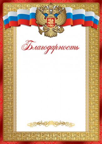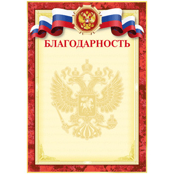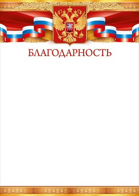 Благодарность "Российская символика" мелованная бумага, 150 г/м2 Ш-17288/1/20
