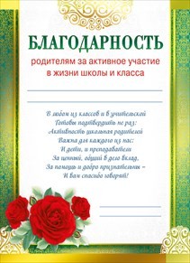Благодарность родителям за активное участие в жизни школы 85.681/1/10