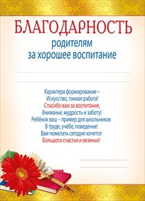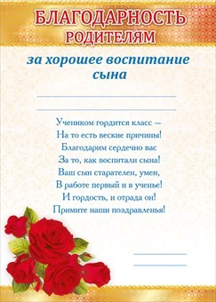 Благодарность родителям за хорошее воспитание сына 085.637/10