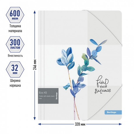 Папка пластиковая на резинках Berlingo "Eco XS" формата А4 с прозрачной обложкой с рисунком. Надежные застежки-резинки. Быстрый доступ к содержимому. Изготовлена из высококачественного полипропилена с матовой текстурой поверхности "песок", на которой не видно отпечатков пальцев и мелких царапин. Предназначена для хранения документов. Толщина обложки 600мкм. Папка вмещает до 300 листов. Упакована в индивидуальный прозрачный пакет по форме.