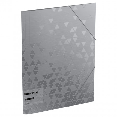 Папка на резинке А4 600мкм. серебряный, рельефные треугольники Berlingo Metallic FB4_A4396/1/5