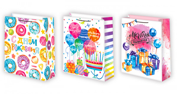 Пакет подарочный "С днём рождения!" крафт, 32х19,5х37см, 7090685/1/10