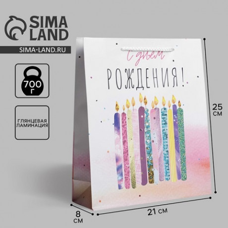 Пакет ламинированный «С Днём Рождения», ML 21 х 25 х 8 см 6582671/1/400
