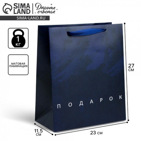 Цвет-Синий Для кого-Для мужчины Плотность, г/м²-190 Допустимый вес вложения, г-1000 Тематика-Надписи, цифры, буквы, Однотонная Тематика праздника-Универсальная тематика Адресат-Без адресата Материал-Бумага Отделка пакета-Ламинация Вид ручки-Ручка-лента Форма пакета-Вертикальный