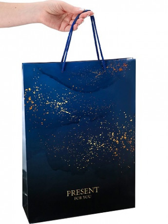 Пакет подарочный с глянцевой ламинацией Темно синий стиль (XL) 32,4х44,5х10,2 см, ПКП-1147/1/12/240