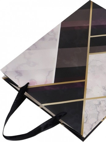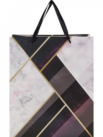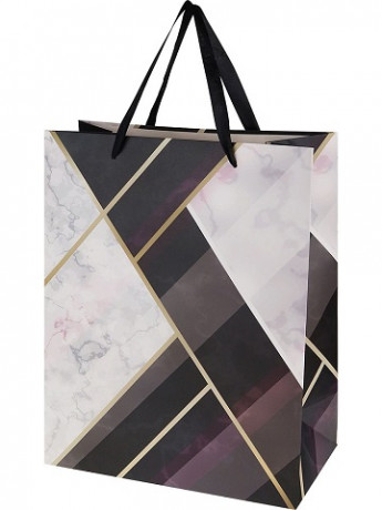 Пакет подарочный с лам. "Мраморные узоры с черным" (L) 26.4х32.7х13.6 см, ППК-3395/1/12/144