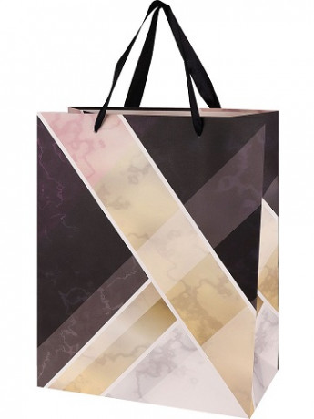 Пакет подарочный с лам. "Мраморные узоры с золотистым" (L) 26.4х32.7х13.6 см, ППК-3396/1/12/144