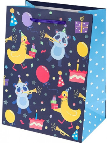Пакет подарочный с ламинацией и глит. "Праздничная Утка" (М) 18*23*10 см, ПКП-2169/1/12/240