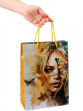 Пакет подарочный с глянцевой ламинацией Девушка (ML) 22x31x10 см, 157 г ПКП-9160/1/12/240