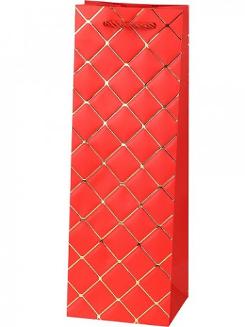Пакет под бутылку с мат.лам.и тис.фол. "Блестящая клетка,красный" 12x35x10см, ППК-4499/1/12/240