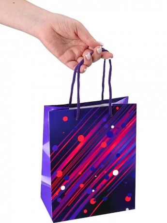 Пакет подарочный с глянцевой ламинацией Фиолетовые линии (М) 18х23х10 см, ПКП-1126/1/12/240