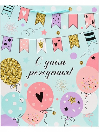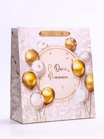 Пакет подарочный люкс "День рождения" (M), 26*32*12 Р825-105/1/12