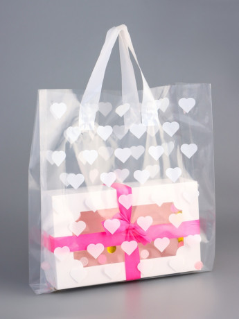 Пакет полиэтиленовый с боковой складкой "Сердечки" 30х37+10см ± 5% 60 м. 10664817/1/50