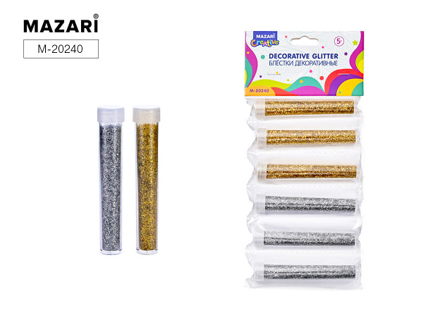Блёстки декоративные MAZARI в пластик. тубе, 6цв., ассорти, M-4294/1/40/1920#