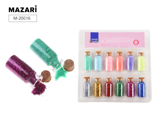 Блестки декоративные MAZARI 6 цв.х 5 г., 6 цв.х 9 г., колба стеклянная M-20016/1/12