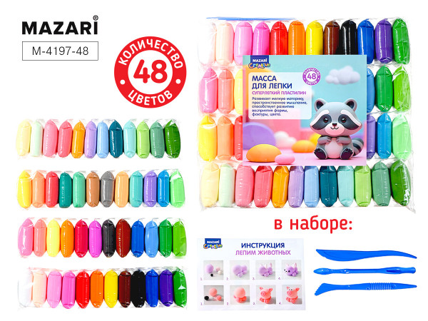 Масса д/лепки "MAZARI" 48 цв. по 12 гр. стеки 3 шт. M-4197-48/1/8