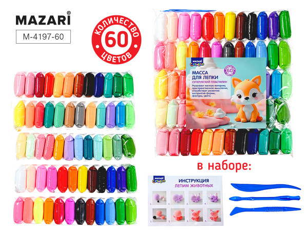 Масса д/лепки "MAZARI" 60 цв. по 12 г. стеки 3 шт. M-4197-60/1/5