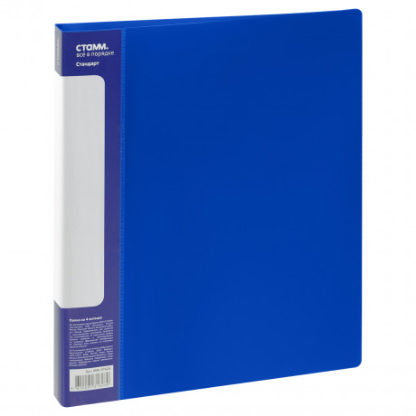 Папка на 4 кольцах СТАММ "Стандарт" А4, 40мм, 700мкм, пластик, синяя ММ-31626/1/3