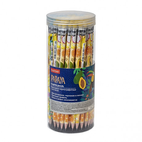 Карандаш ч/г HB с ластиком, дерево Hatber Papaya BL_079537/1/72
