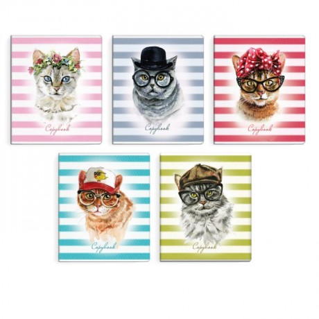 Тетрадь А5 48л клетка скоба крафт картон, Academy Style Коты в очках 14112/5/1/10/60