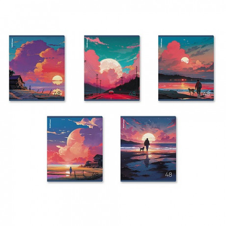 Тетрадь общая ученическая формата А5+ (170х203 мм). Обложка из высококачественного мелованного картона плотностью 190 г/м2. Отделка - матовая ламинация. В блоке 48 листов в клетку с полями. Бумага офсетная плотностью 60 г/м2. Цвет линовки - синий. Скругленные уголки обложки и блока. Тип скрепления - скоба. Тетради разного дизайна упакованы в термоусадочную пленку по 5 штук.