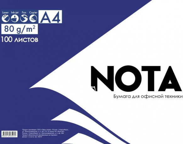 Бумага А4 Офис Лидер "Nota" 80 г/м2 С 100л. 85070/1/15
