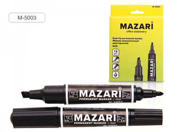 Маркер перманентный двустронний черный 2-6мм. пулевид./клиновид. MAZARI М-5003-71 /12/480