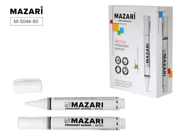 Маркер перманентный белый 2мм. пулевидный MAZARI ARCTICA M-5044-80 /1/96