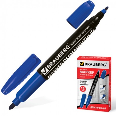 Маркер перманентный двустронний синий 0.5-1мм. круглый Hatber "2WAY" PM_060854 /1/12