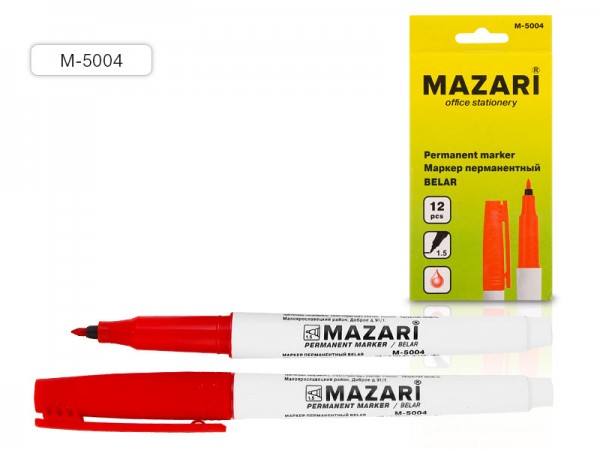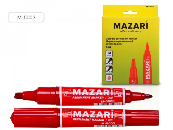 Маркер перманентный двустронний красный 2-6мм. пулевид./клиновид. MAZARI DUO М-5003 /16/480