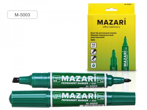 Маркер перманентный двустронний зеленый 2-6мм. пулевид./клиновид. MAZARI DUO М-5003/16/480