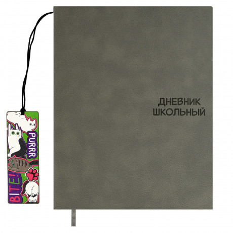 закладка из искусственной кожи с полноцветной печатью, раскраска на форзаце Дневник школьный арт. 68807 / 15 КОТЫ (кожзам: А5+; мягкий переплёт, запаянный край, материал обложки: искусственная кожа "Наппа экстра"; декор: блинтовое тиснение; способ крепления блока: ниткошвейный; вн. блок: 48 л., белый офсет 80 г/м², печать в одну краску, справочный материал: универсальная шпаргалка; отделка среза: окрашивание пантоном; закладка: одно ляссе; форзац: печать в одну краску; особенности: закладка из искусственной кожи с полноцветной печатью, раскраска на форзаце; индивидуальная упаковка: промостикер + ПЭТ-пакет)